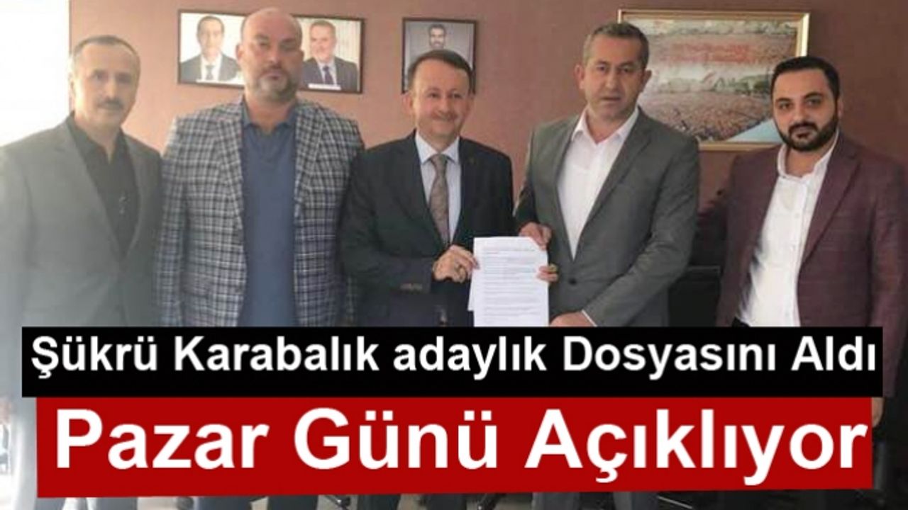 AK Parti’den Kartepe Belediye Başkan aday adayı olacak Kartepe eski Belediye Başkanı Şükrü Karabalık, AK Parti Kartepe İlçe Teşkilatına giderek aday adaylık başvurusunu hafta sonu yapacak. Kalabalık bir grupla aday adayı olması beklenen Karabalık’ın başvuru tarihi henüz netleşmedi. Karabalık, Pazar günü saat 15:00’de aday adaylık başvurusunu yapması bekleniyor.